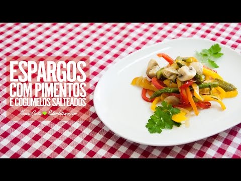 Receita de Espargos com Pimentos e Cogumelos Salteados